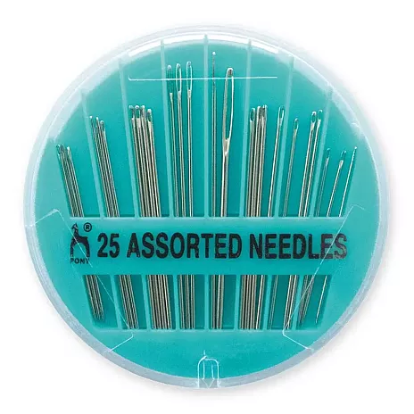 - Bijzonderheden: 25 zilverkleurige naainaalden in verschillende soorten en maten, in een handig kunststof doosje